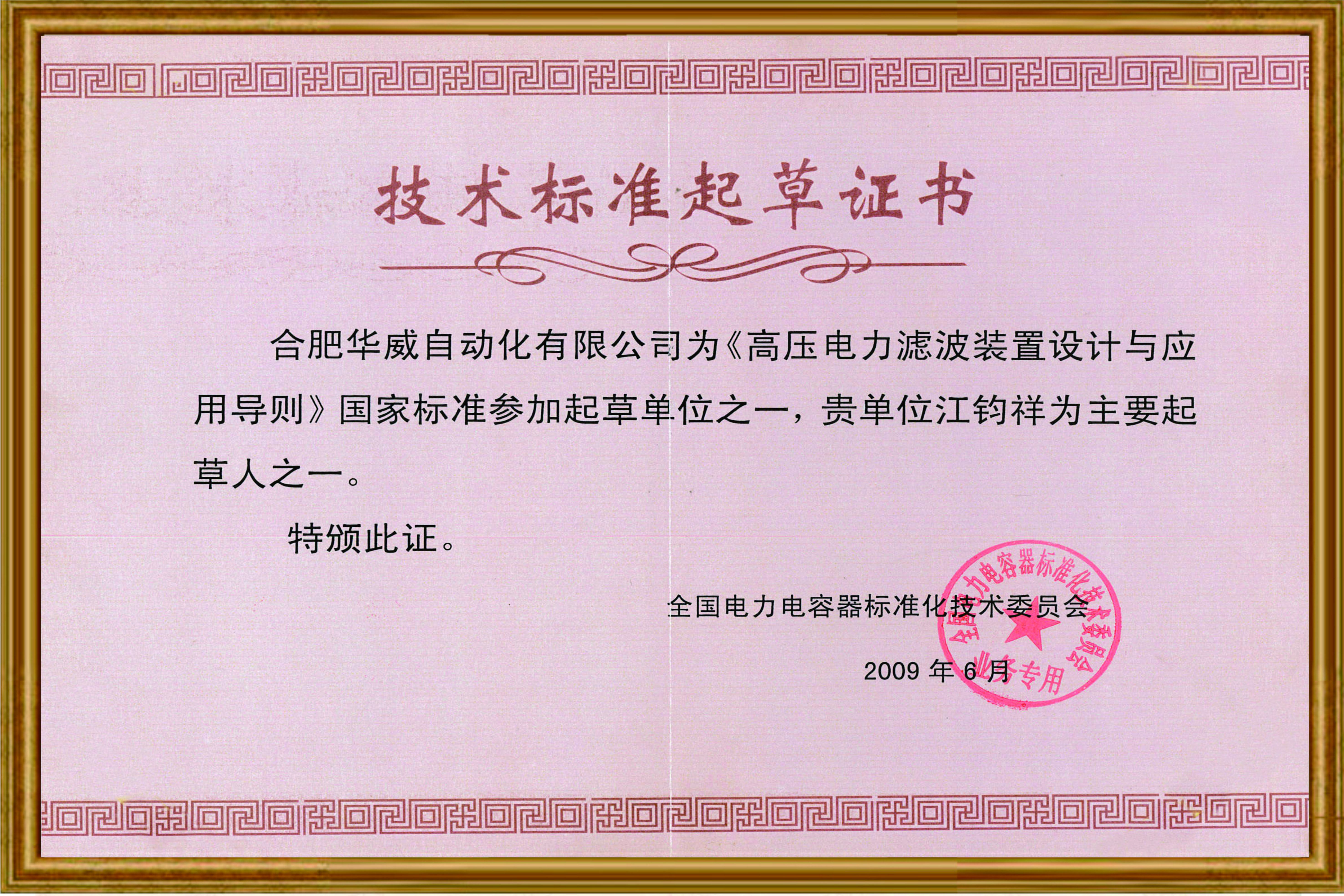 技術(shù)標(biāo)準(zhǔn)起草證書(shū)
