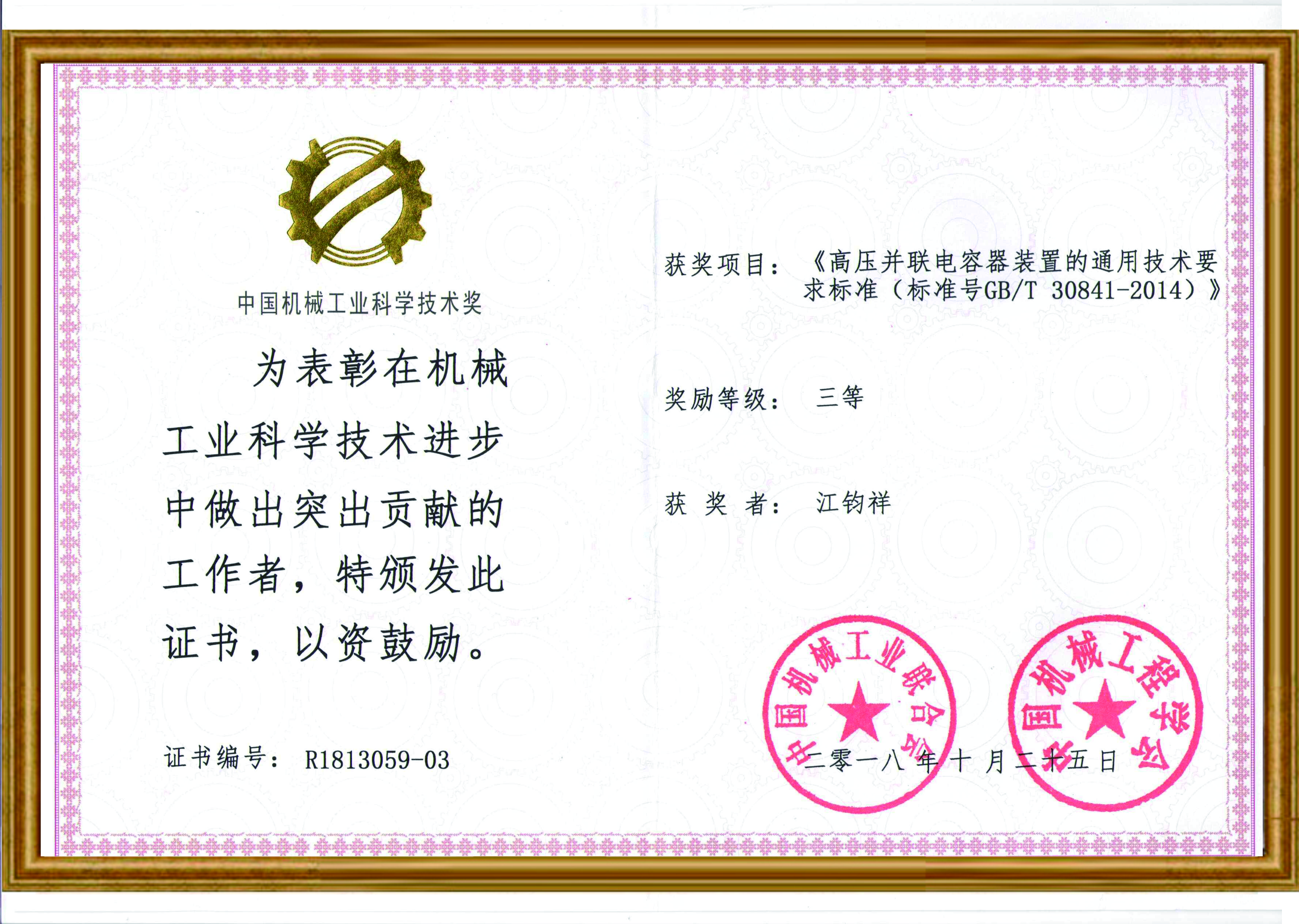 中國機(jī)械工業(yè)科學(xué)技術(shù)獎(jiǎng)